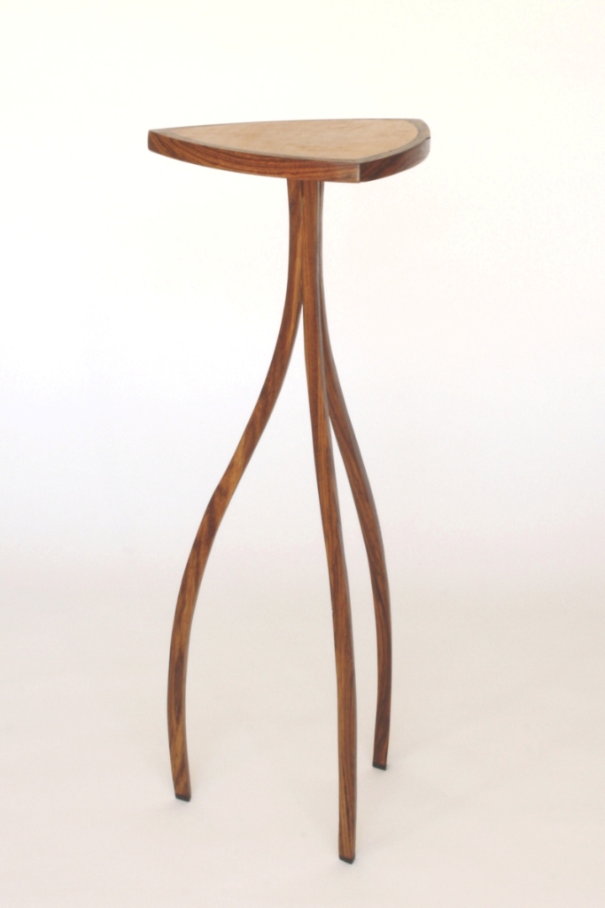 The curves on this plant stand are reminiscent of the old glass coke bottles. Curving the legs in and out over the piece draws the eye up and down. It is just big enough for a plant or other precious item to be displayed.