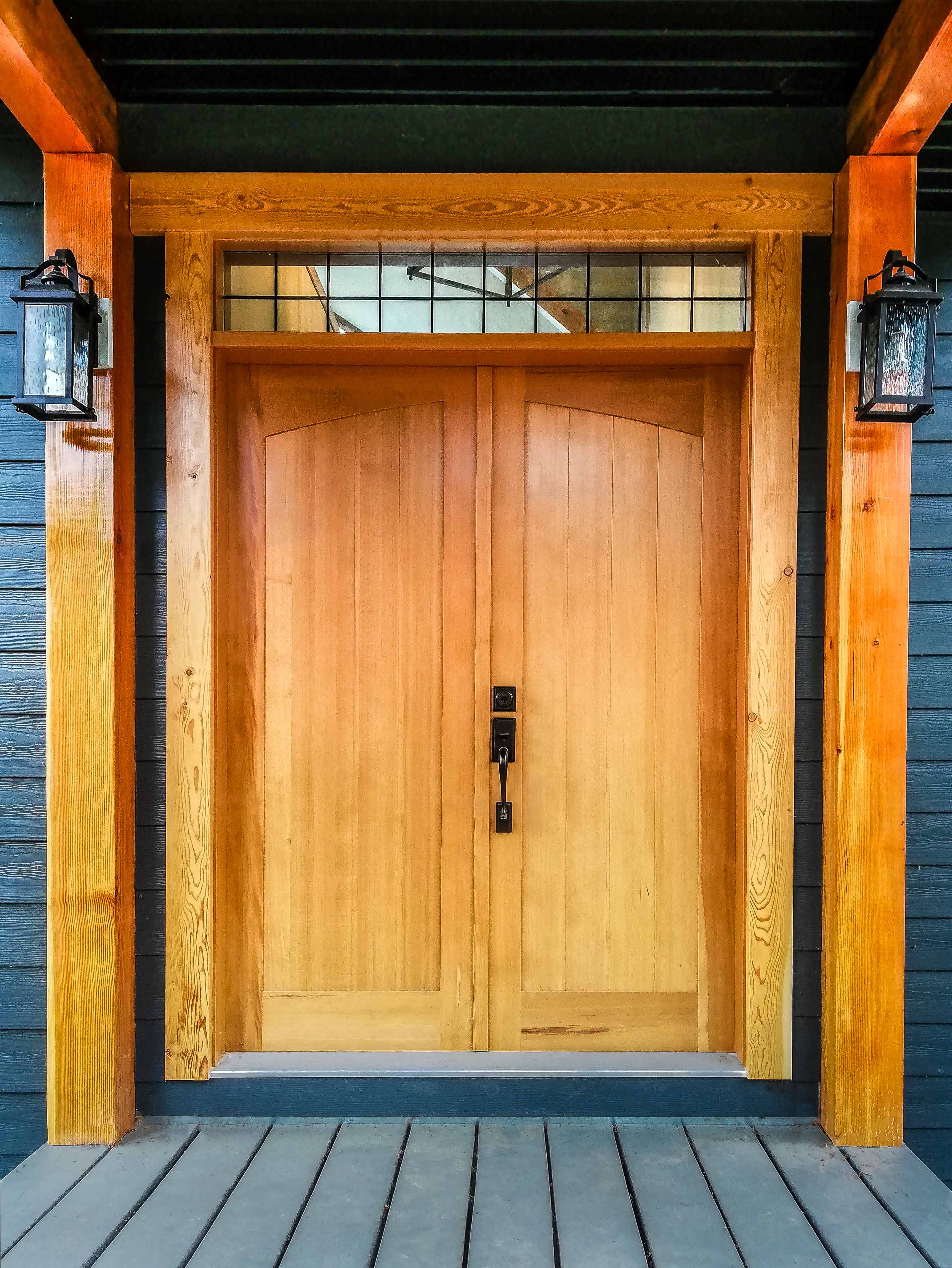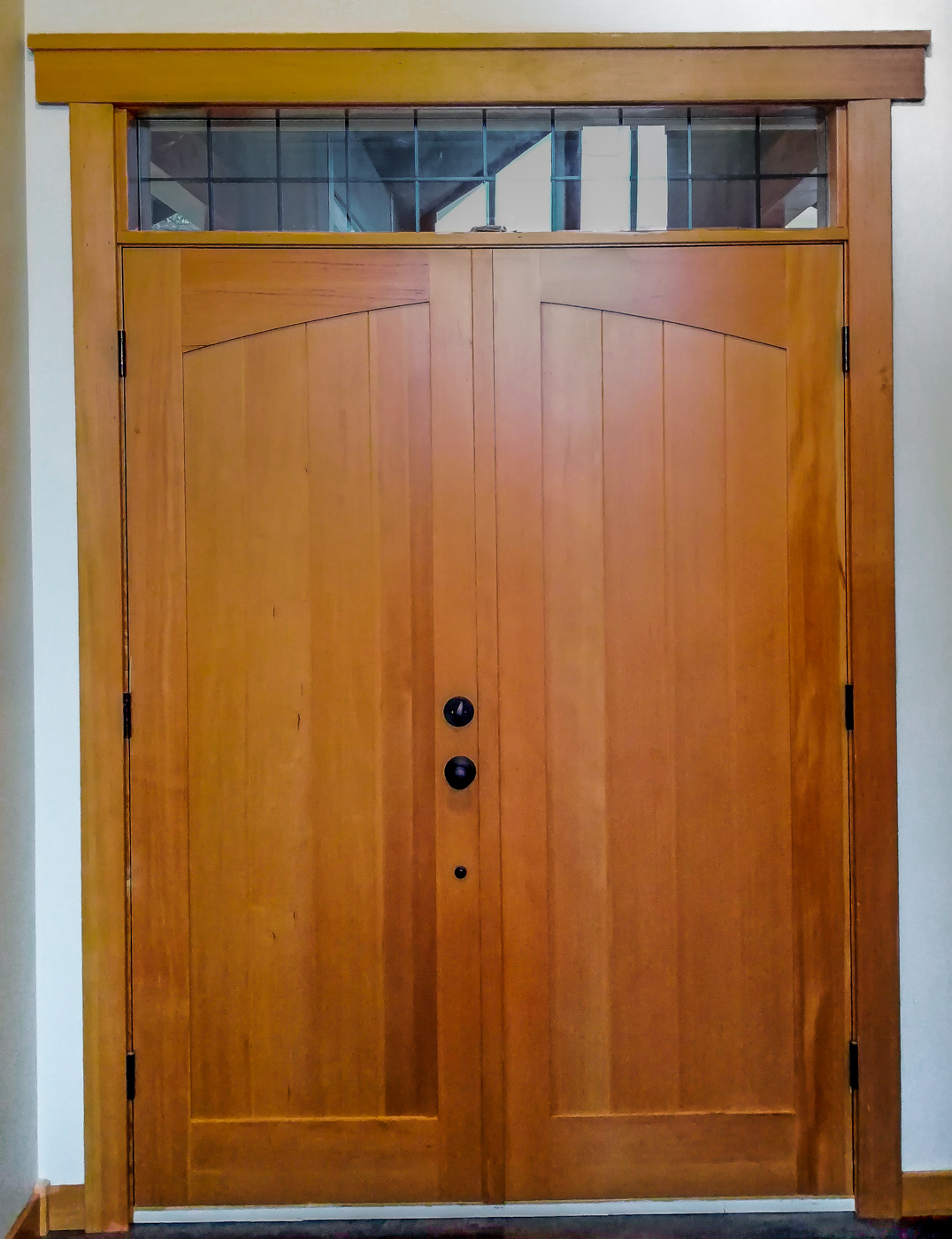 This set of French doors was installed in a home in Invermere which had lots of Fir already in the colour scheem. The gorgeous Vertical Grain Fir has wonderfully tight and straight grain which lends a contemporary aesthetic to the mountain home. The transom allows for more light into the home and has muntins to match the glazing in the rest of the home.