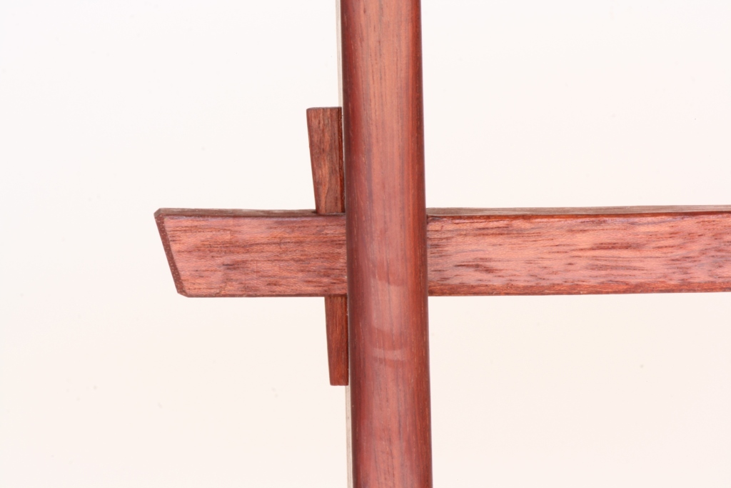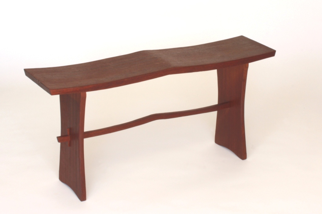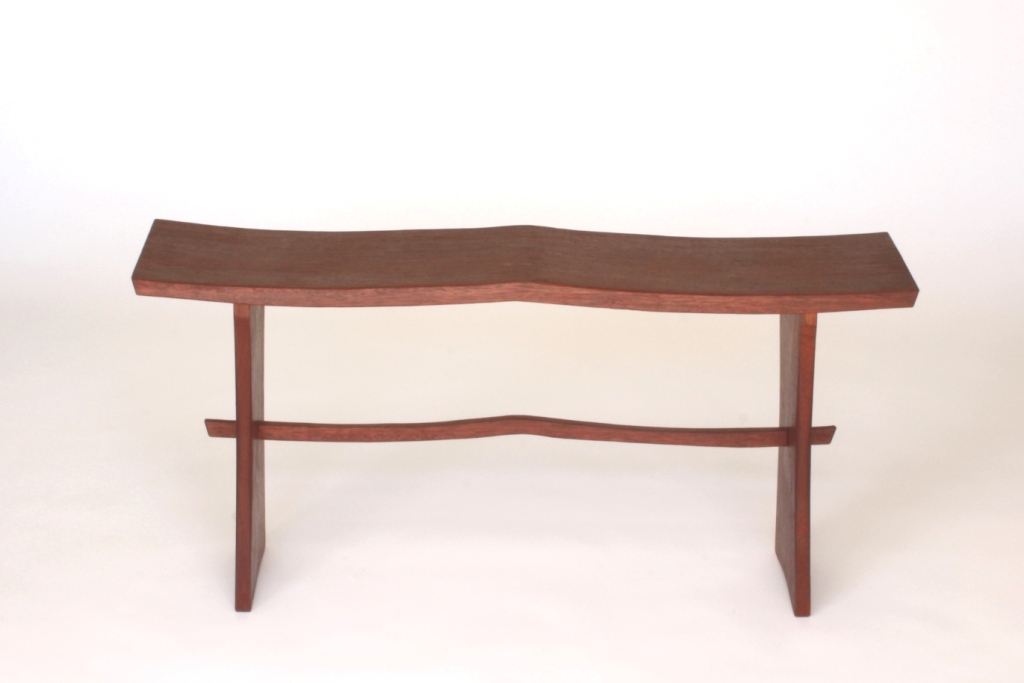 This entry bench has a slight asian feel; The benchtop slants down towards the front slightly to make it more comfortable to tie and untie shoes.